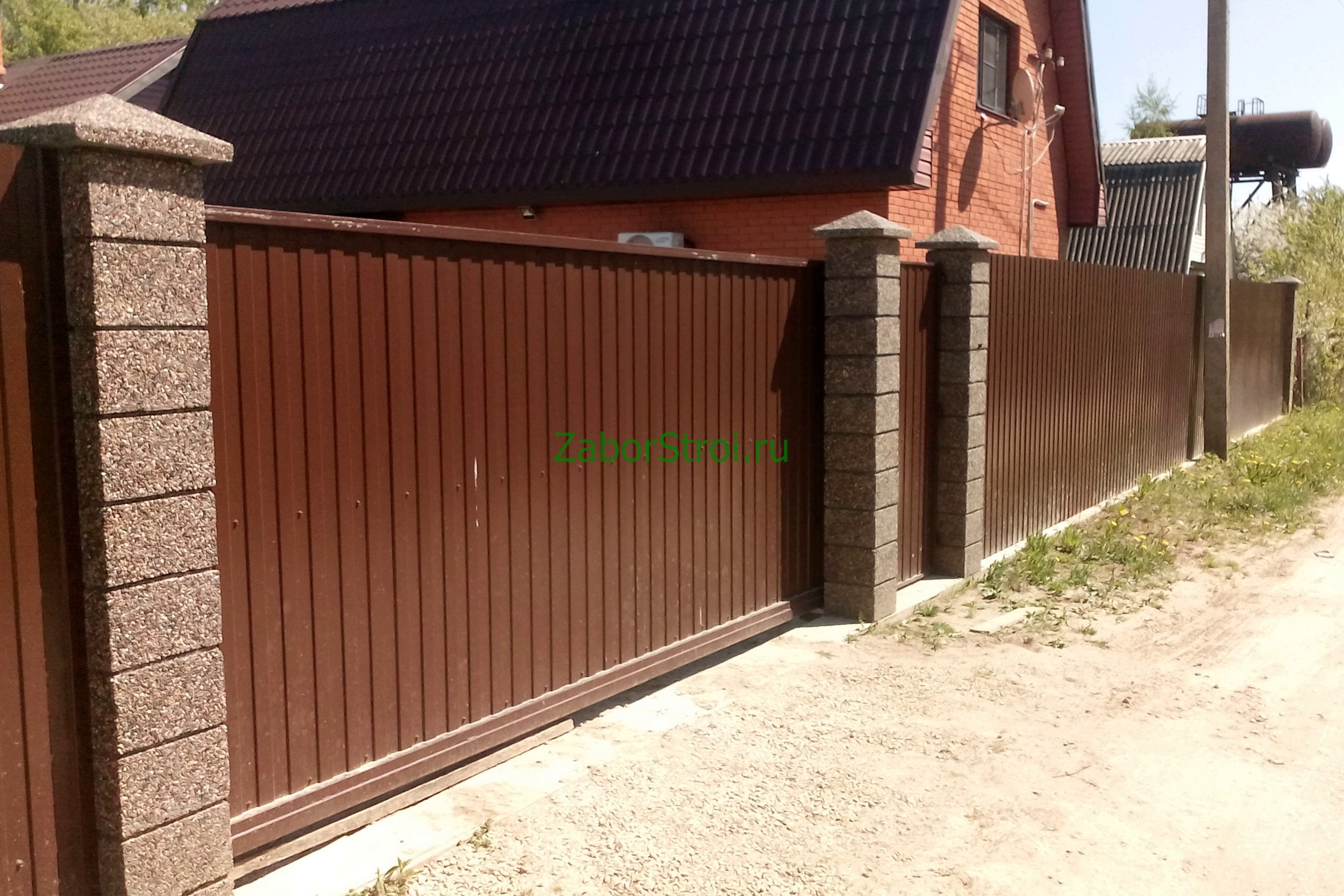 Откатные ворота из профнастила на винтовых сваях (цена на бетонном основании +20000р)