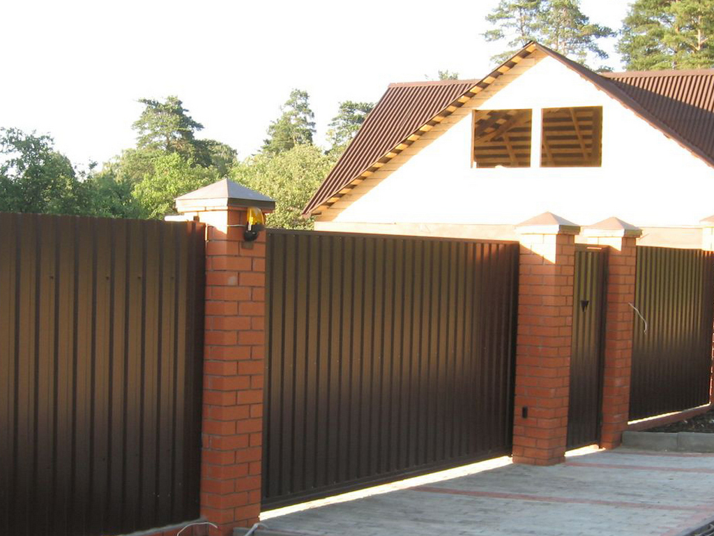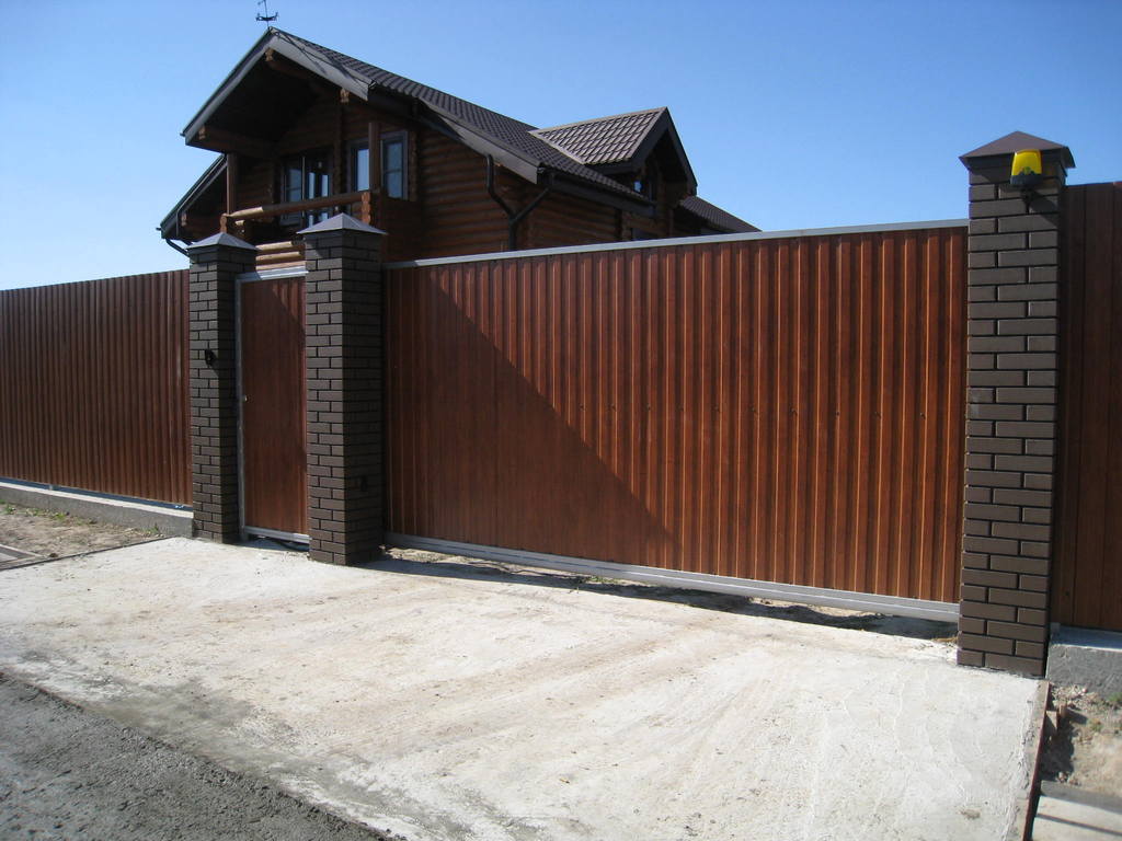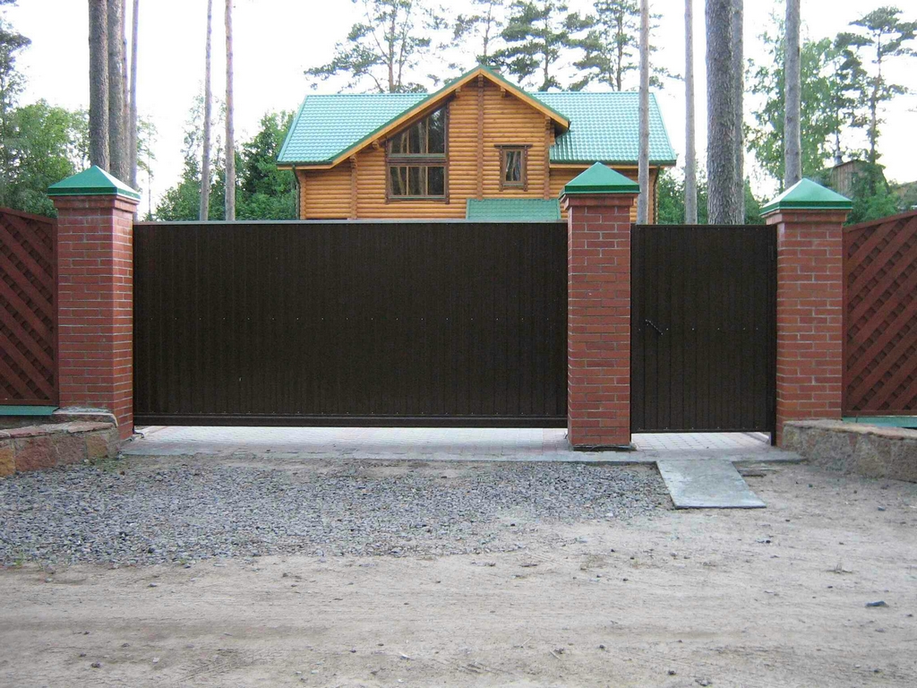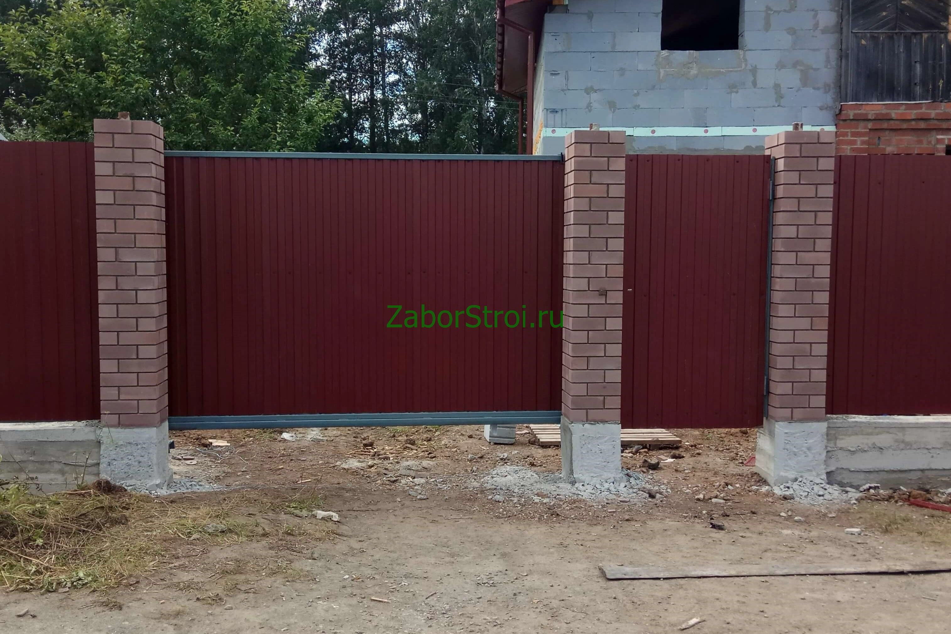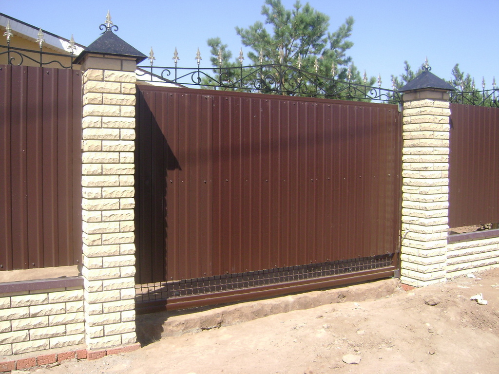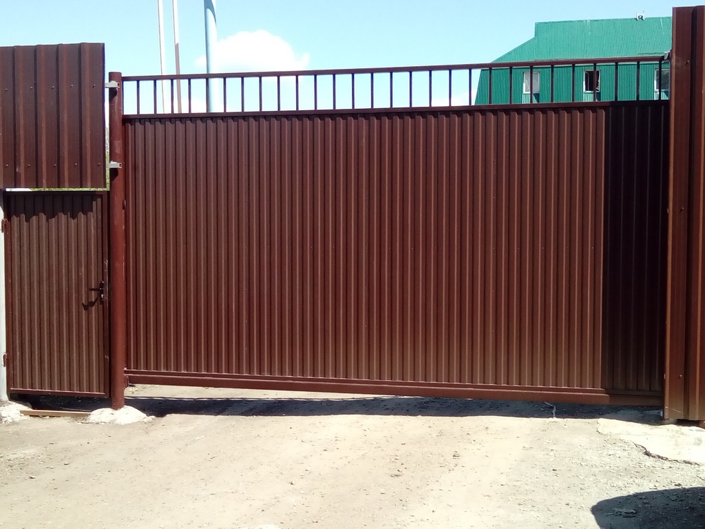Откатные ворота из профнастила на винтовых сваях (цена на бетонном основании +20000р)