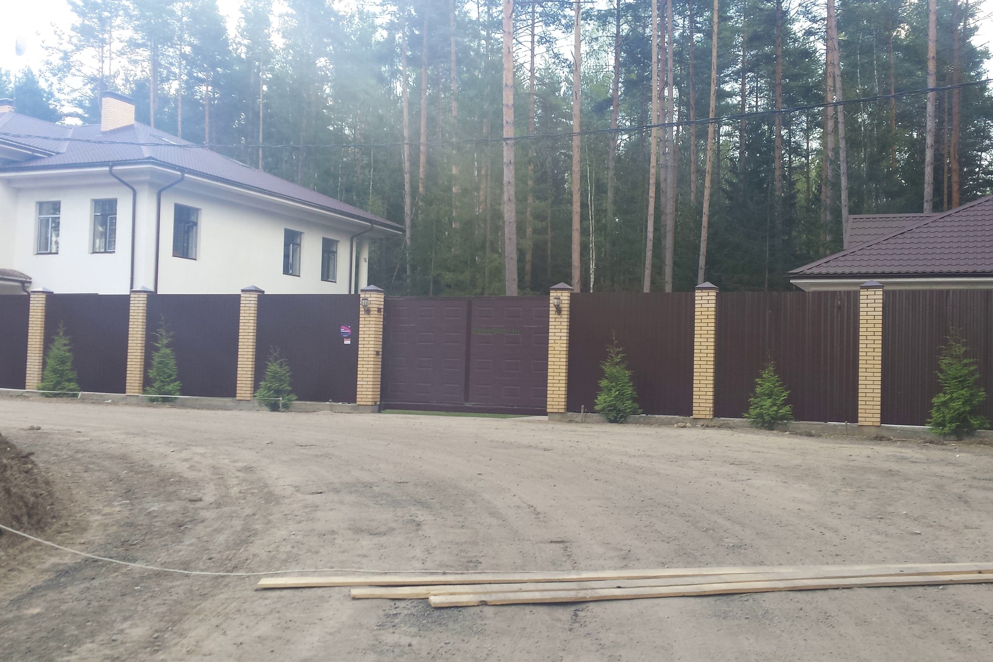 Откатные ворота из профнастила на винтовых сваях (цена на бетонном основании +20000р)